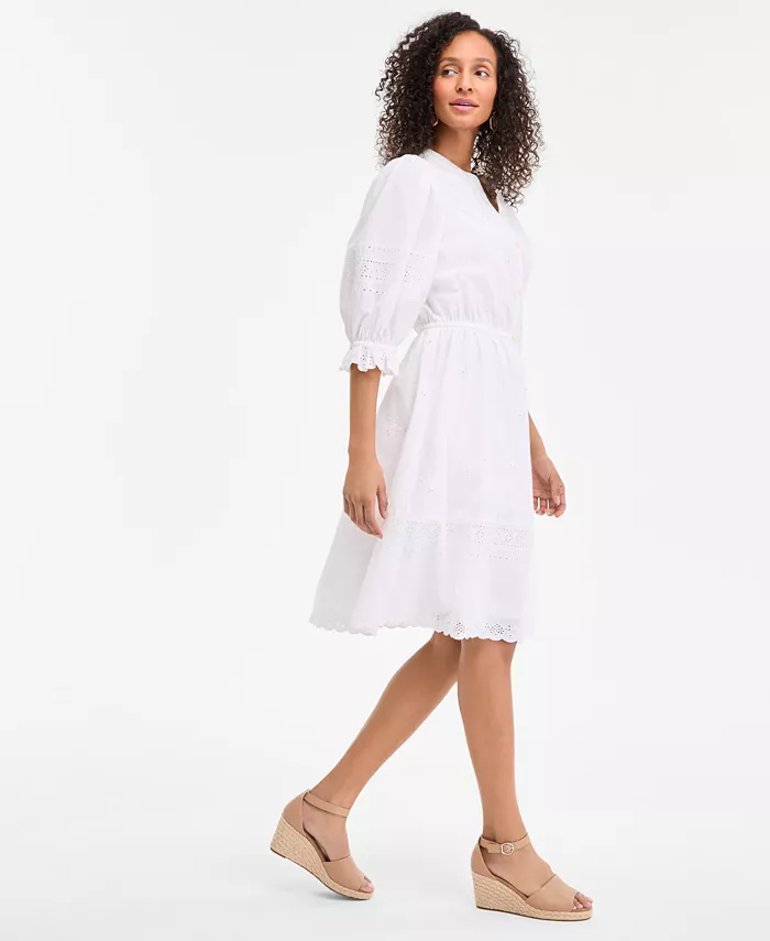 Women’s 3/4 Sleeve Eyelet Cotton Dress, Exclusively at Macy’s